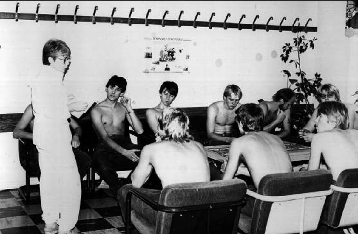 Signalregementet S 2, verksamhetsår 1984.Värnpliktiga på besök på sjukan.
