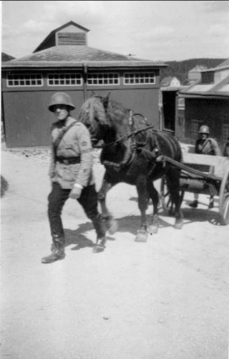Militärer i fält, väbel Bresky med hästanspänd vagn
