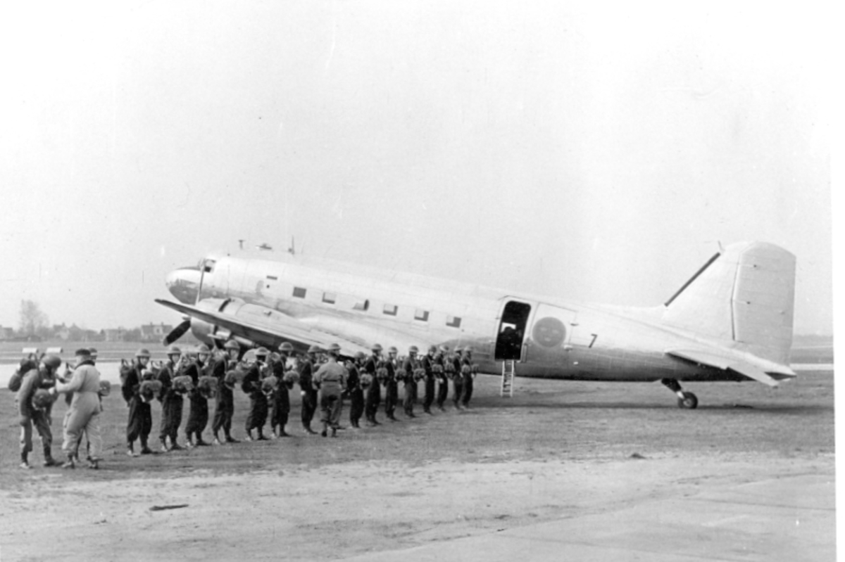 Titel: Fallskärmsjägarskolan Karlsborg 1959.Inför fallskärmshoppning.