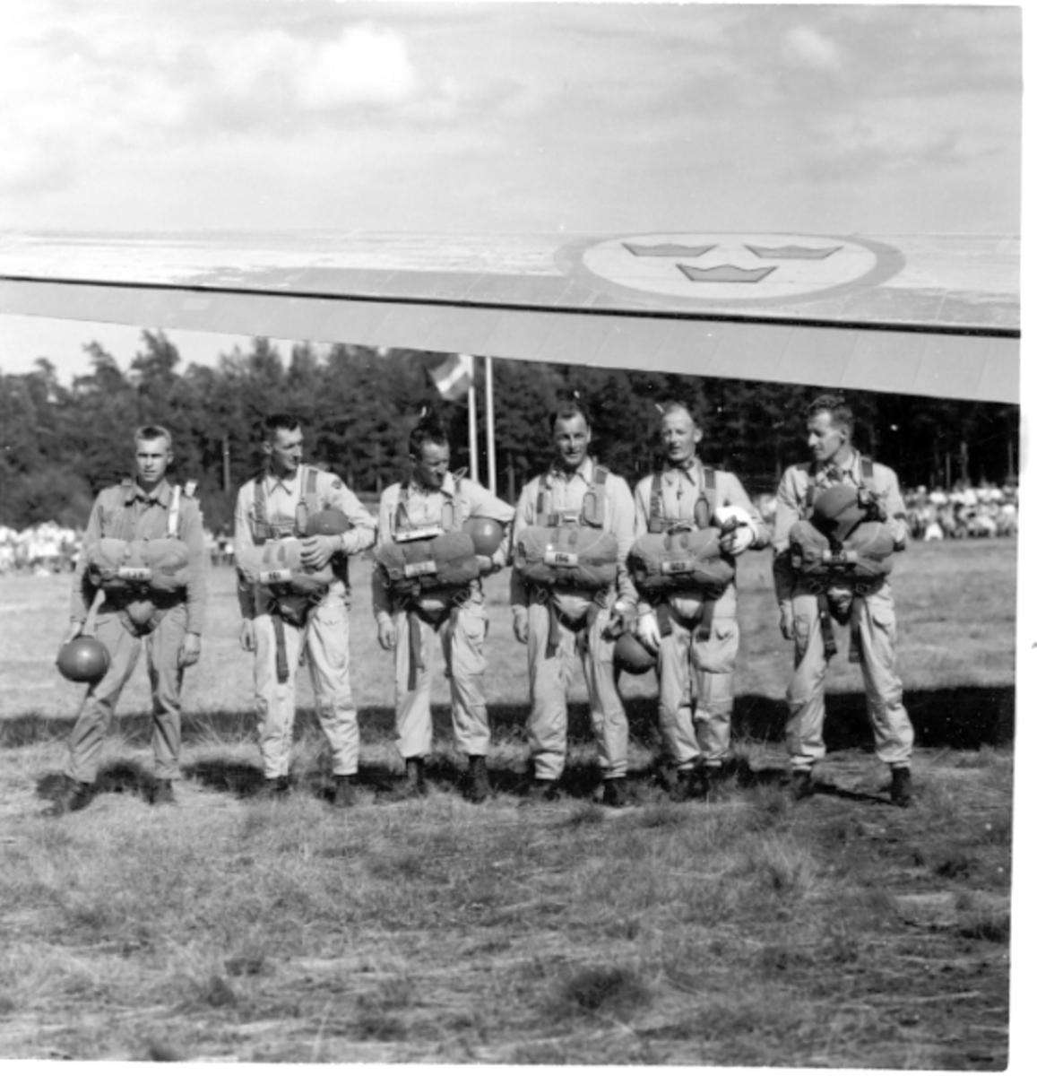 Titel: Fallskärmsjägarskolan Karlsborg 1959.Inför fallskärmshoppning.