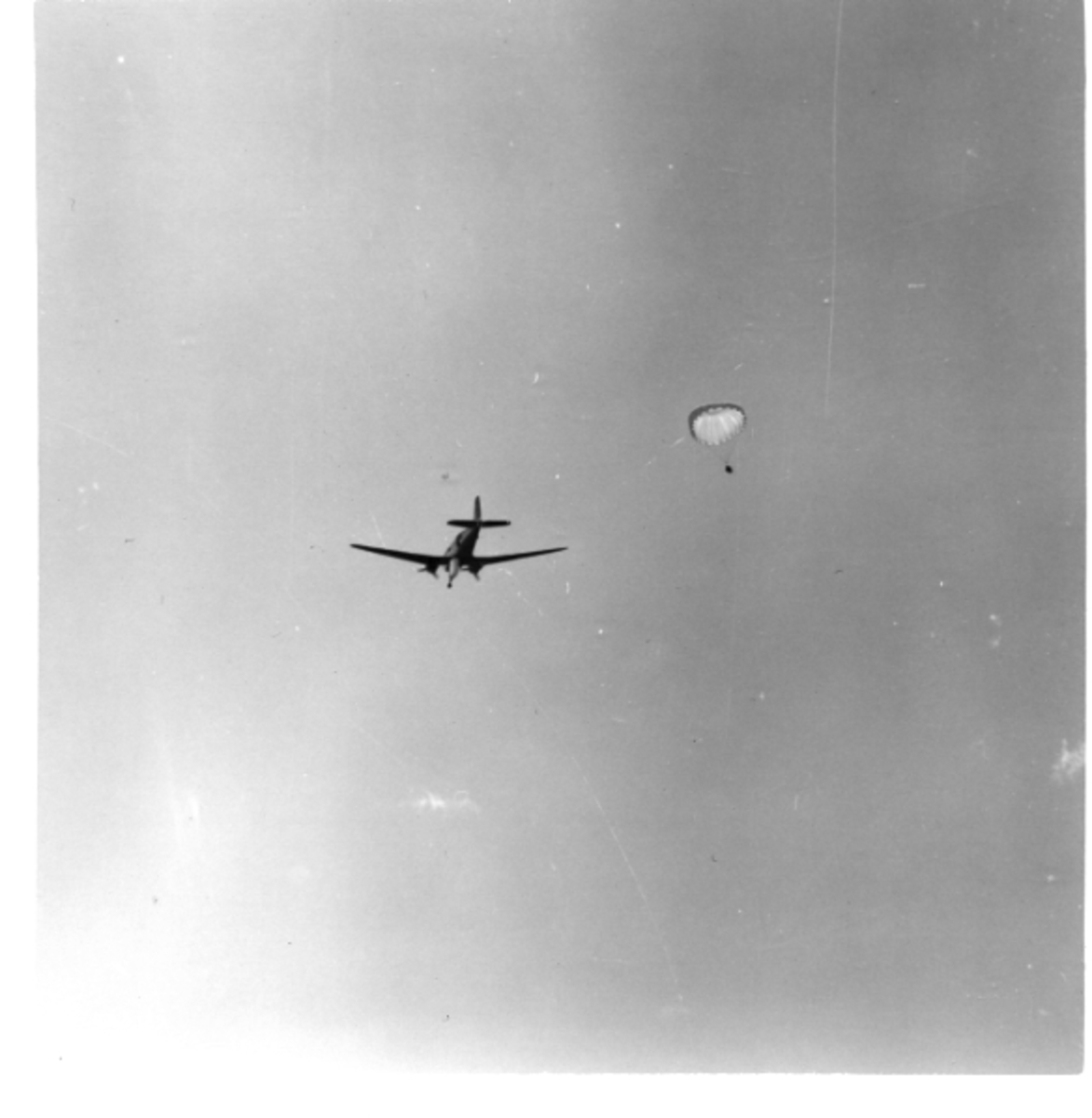 Fallskärmsjägarskolan Karlsborg 1959.Fallskärmshoppning.
