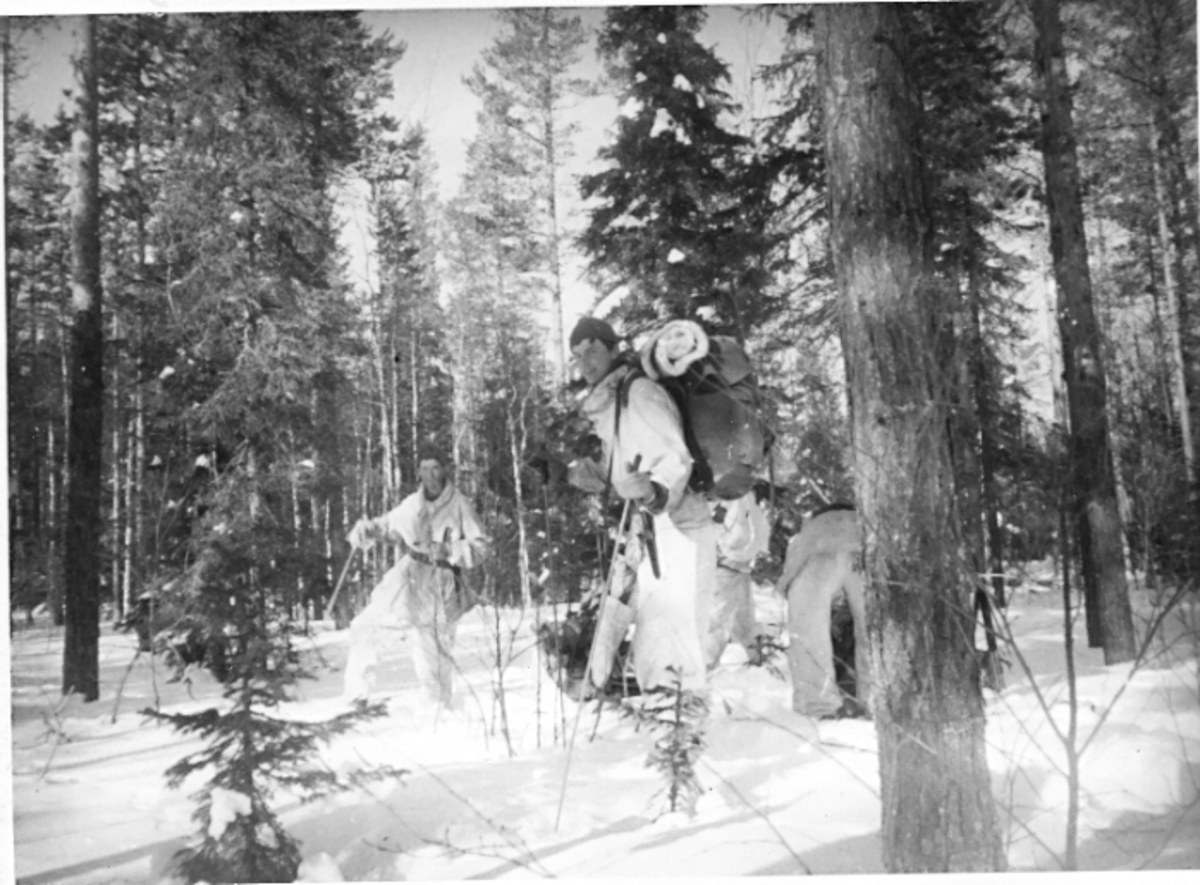 Titel: Fallskärmsjägarskolan Karlsborg slutet av 1950-tal. Vinterövning.