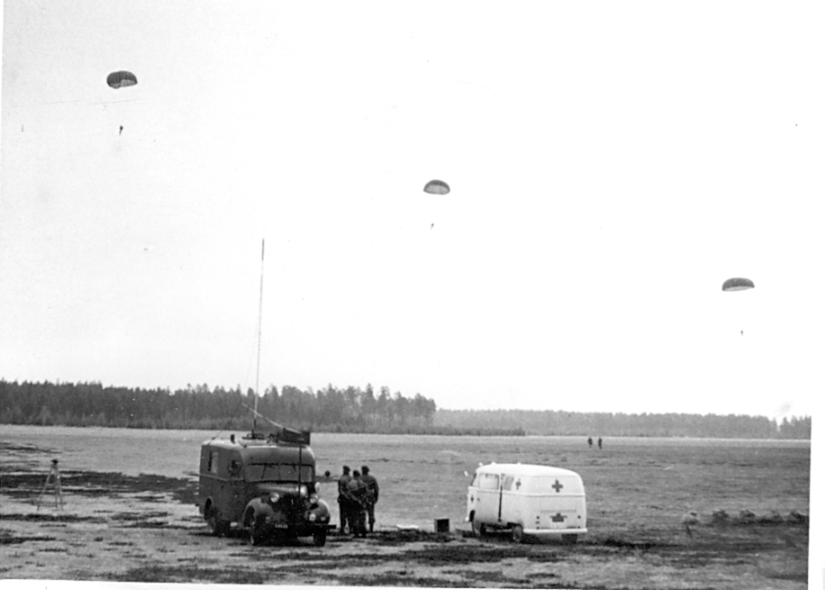 Fallskärmsjägarskolan Karlsborg 1955.Fallskärmshoppning.