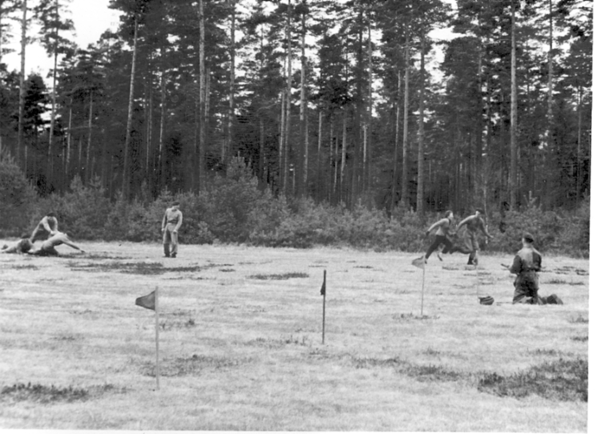 Titel: Fallskärmsjägarskolan Karlsborg 1955.Landning