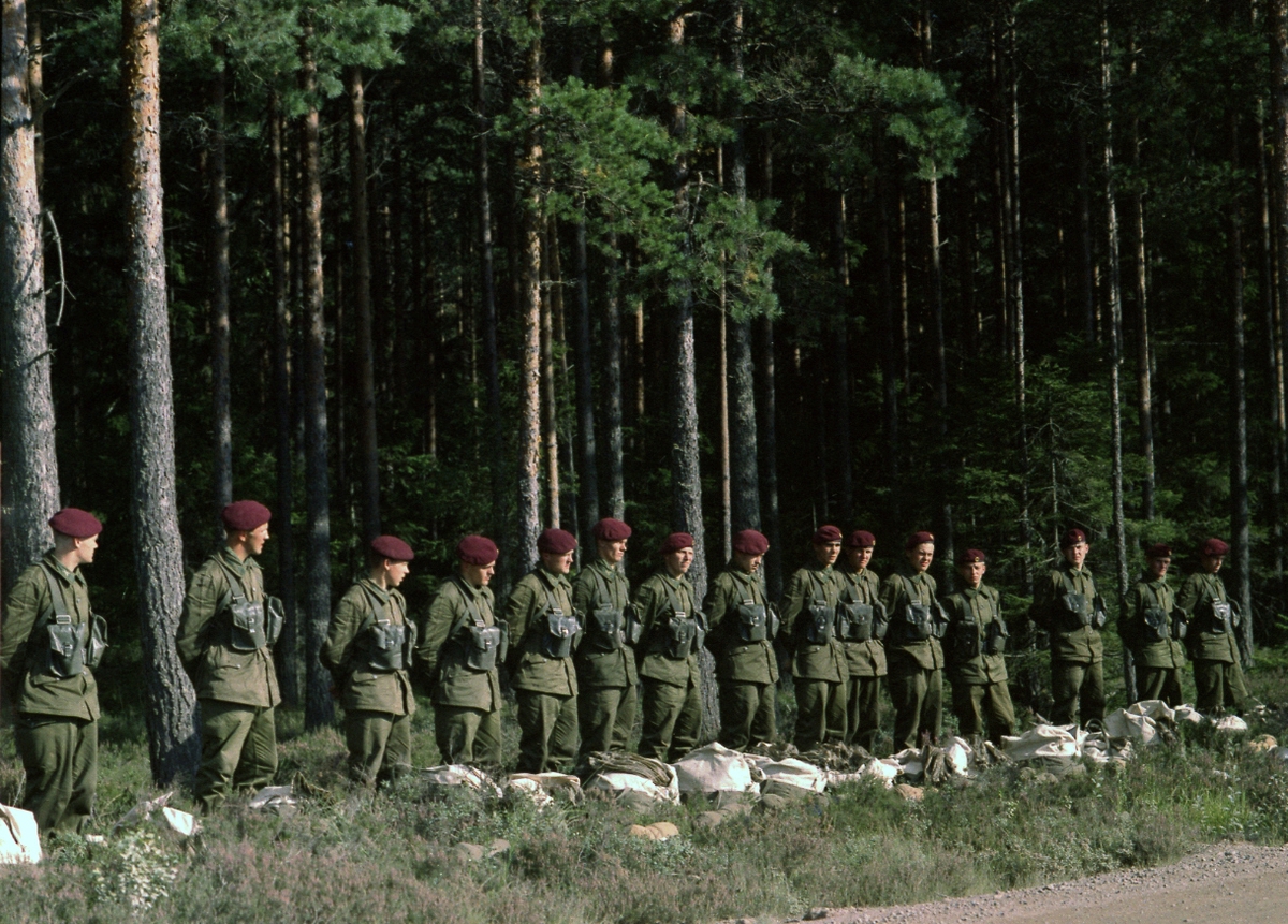 Fallskärmsjägarskolan i Karlsborg 1960.Uppställning efter hopp.