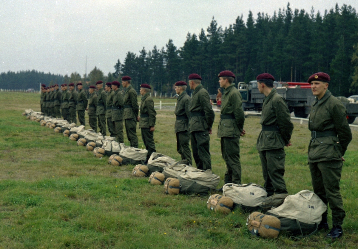 Fallskärmsjägarskolan i Karlsborg 1963.Uppställning efter hopp.