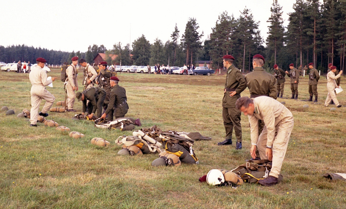 Fallskärmsjägarskolan i Karlsborg 1966.FJS-dagen.Frifalluppställning.