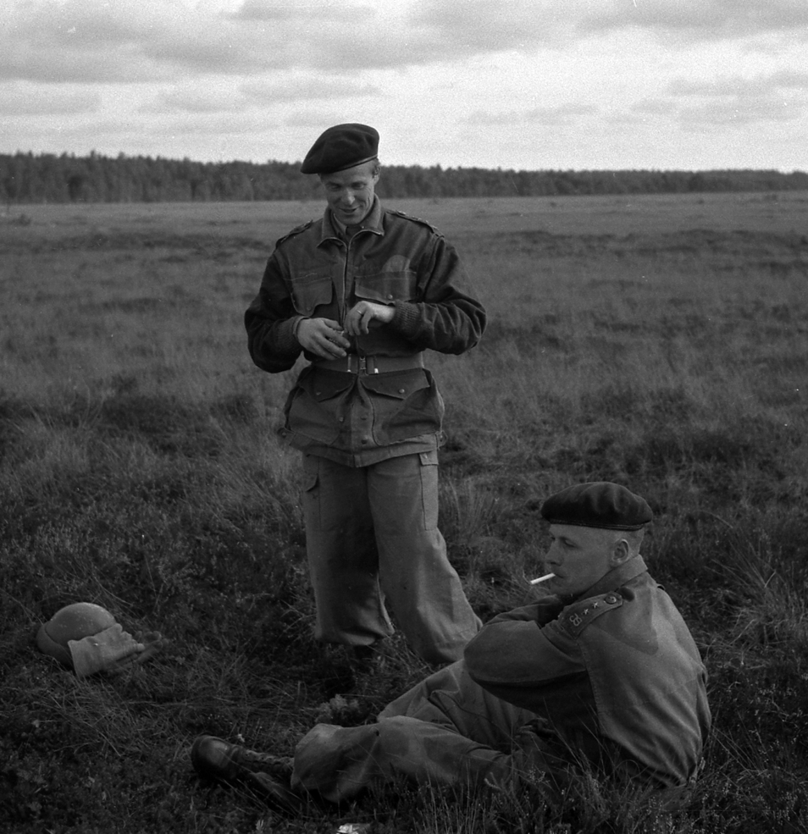 Fallskärmsjägarskolan i Karlsborg 1952. Återsamling efter fallskärmshopp.