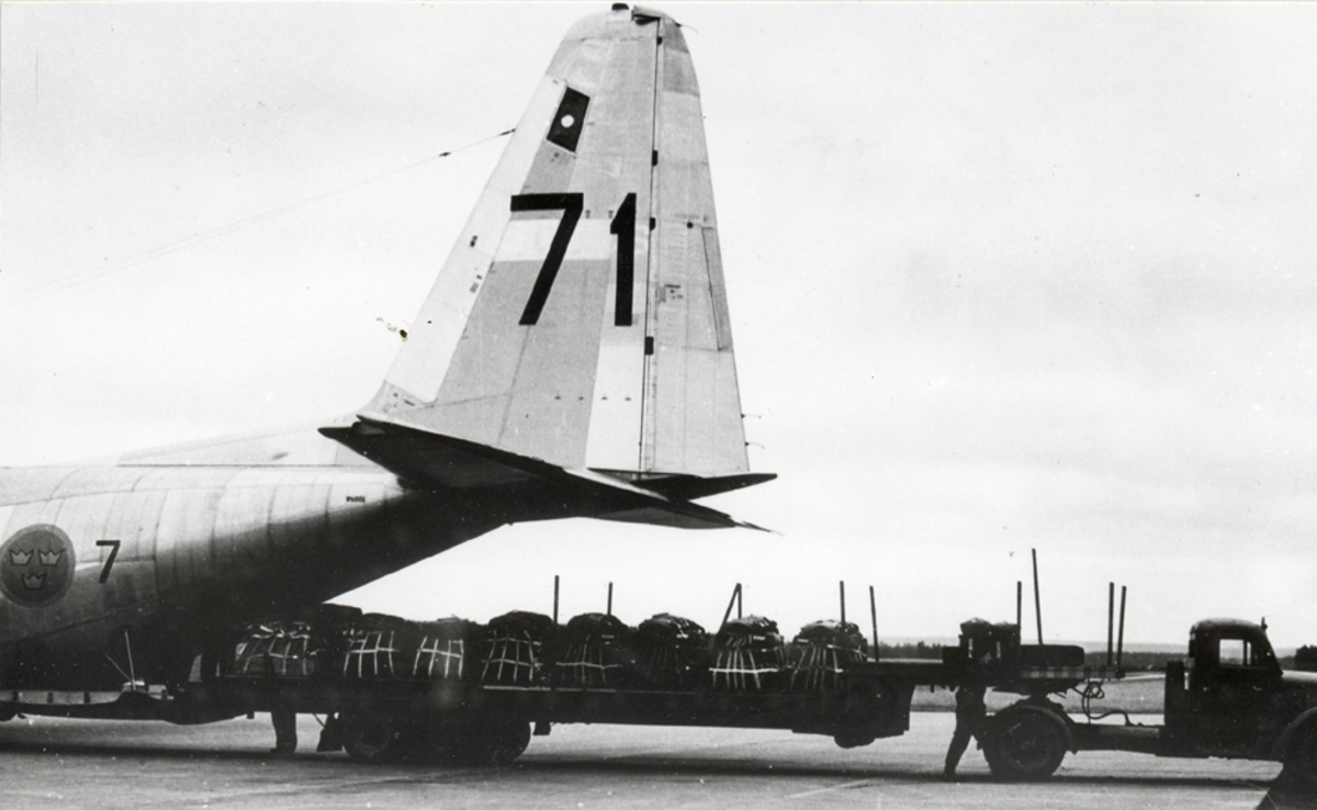 Fallskärmsjägarskolan i Karlsborg 1956.Hercules ilastning.