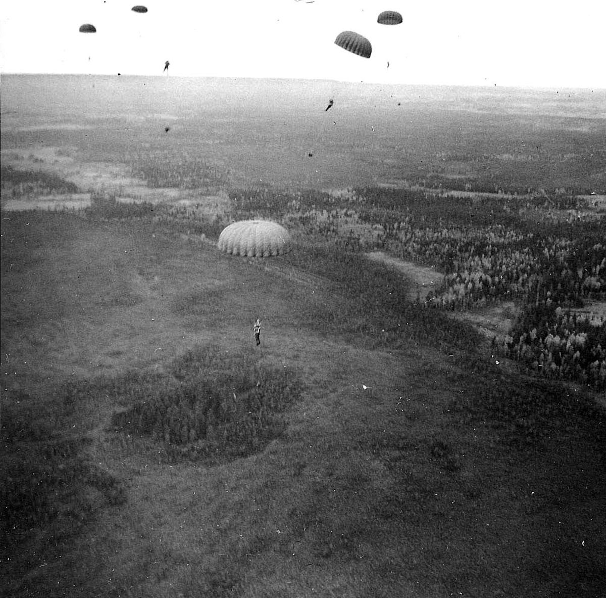 Fallskärmsjägarskolan i Karlsborg 1956.Hopp över mosse.