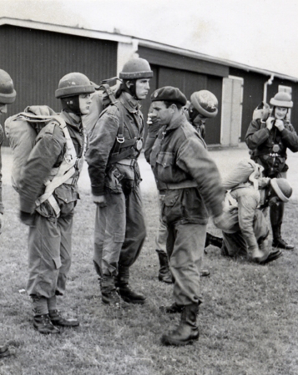 Fallskärmsjägarskolan i Karlsborg 1956.Hoppare-kontroll.