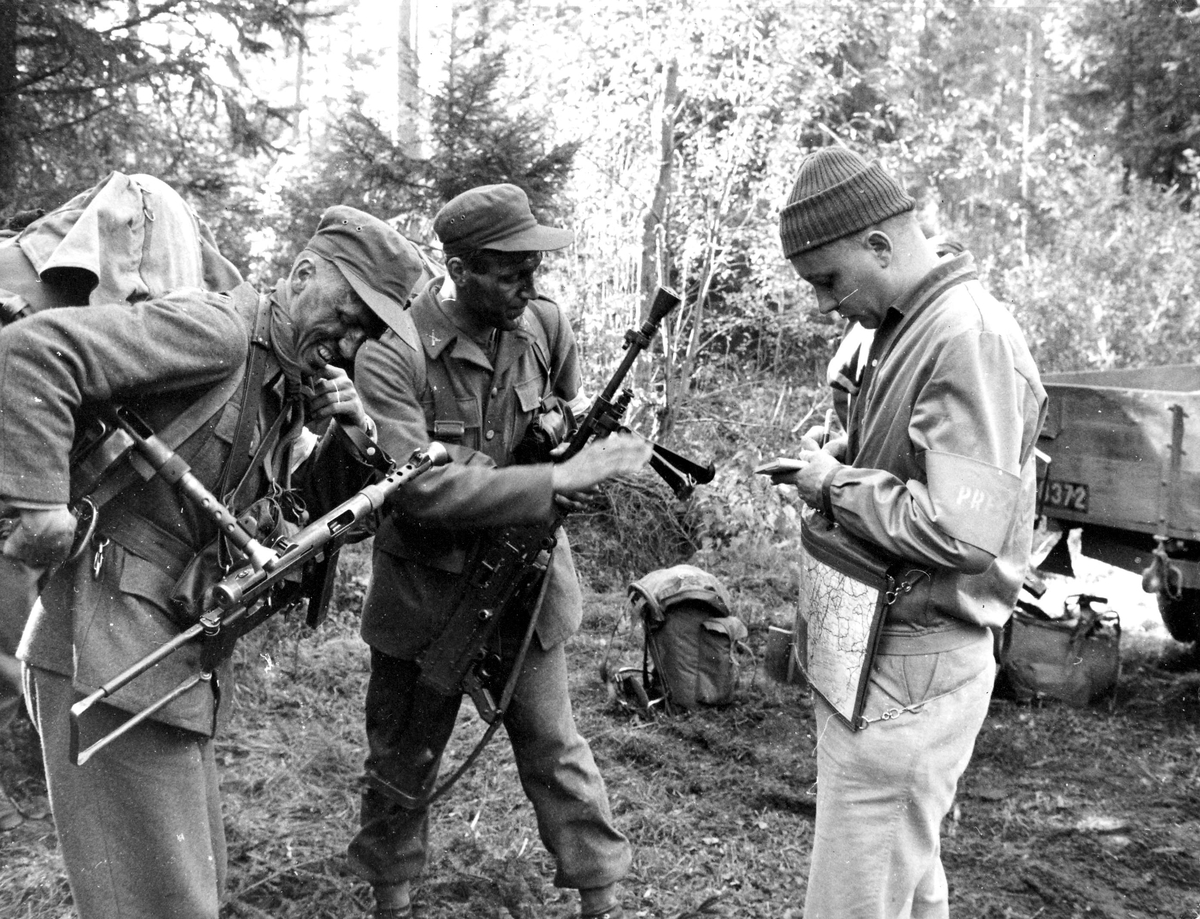 Fallskärmsjägarskolan i Karlsborg 1956.Kompassen kollas.