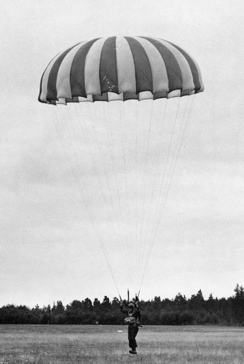 Fallskärmsjägarskolan i Karlsborg 1956.Landning .