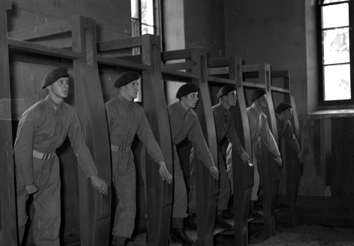 Fallskärmsjägarskolan i Karlsborg 1954. Hopphallen.