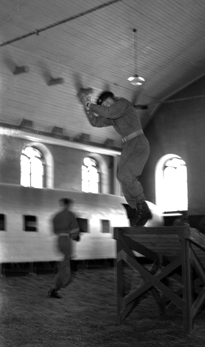 Fallskärmsjägarskolan i Karlsborg 1954.Hopphallen.