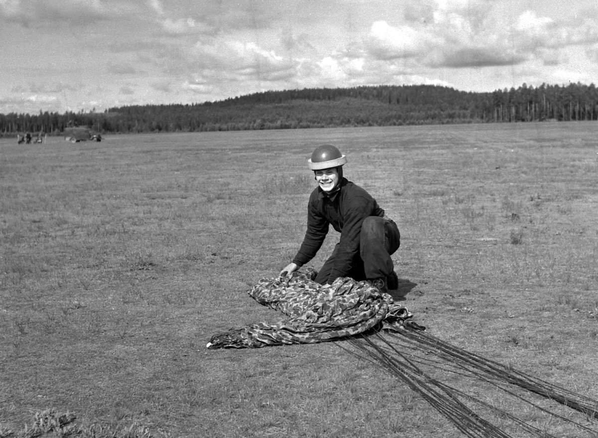 Titel: Fallskärmsjägarskolan Karlsborg 1956.Hoppning.