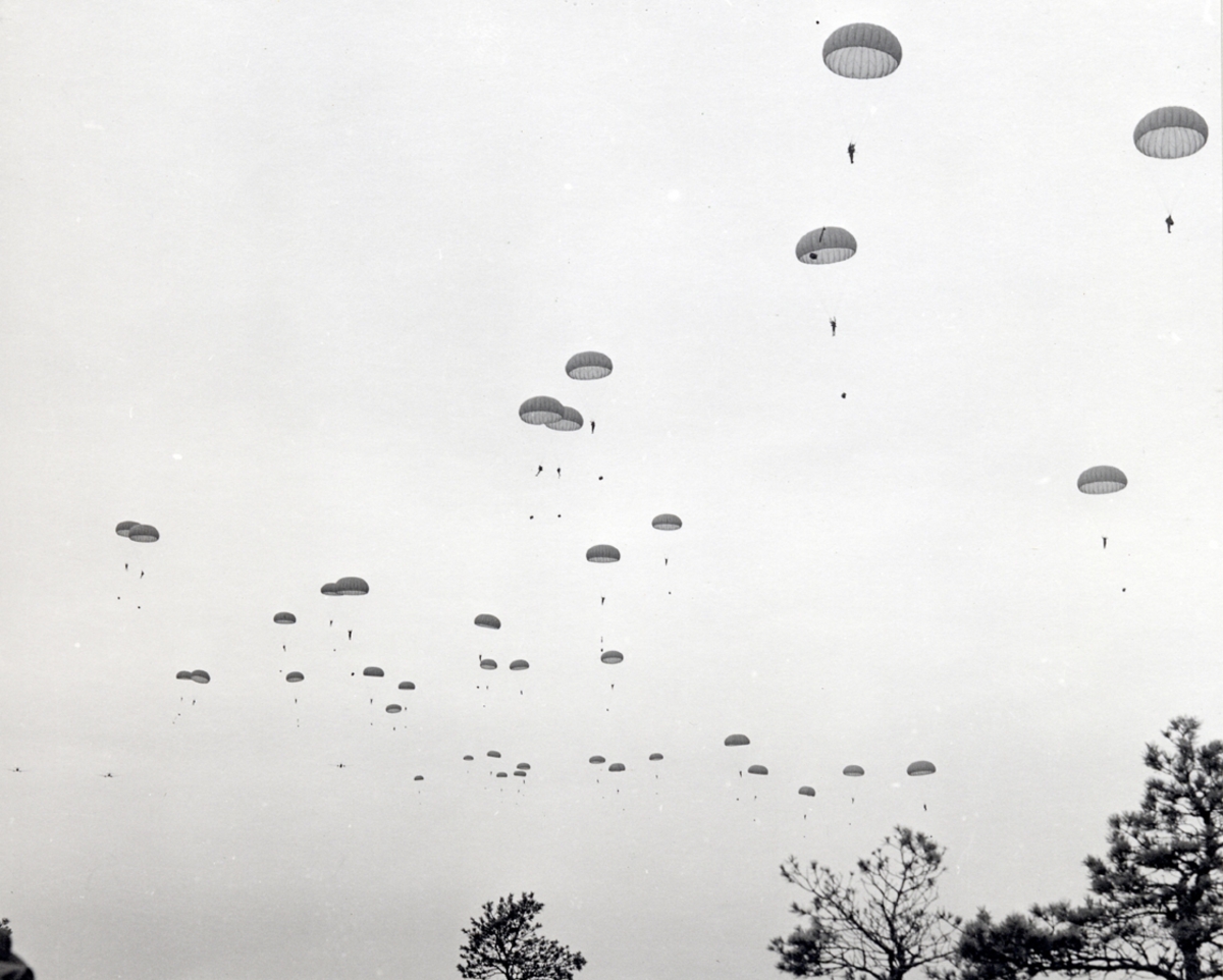 Fallskärmsjägarskolan i Karlsborg 1956.Många hoppare.