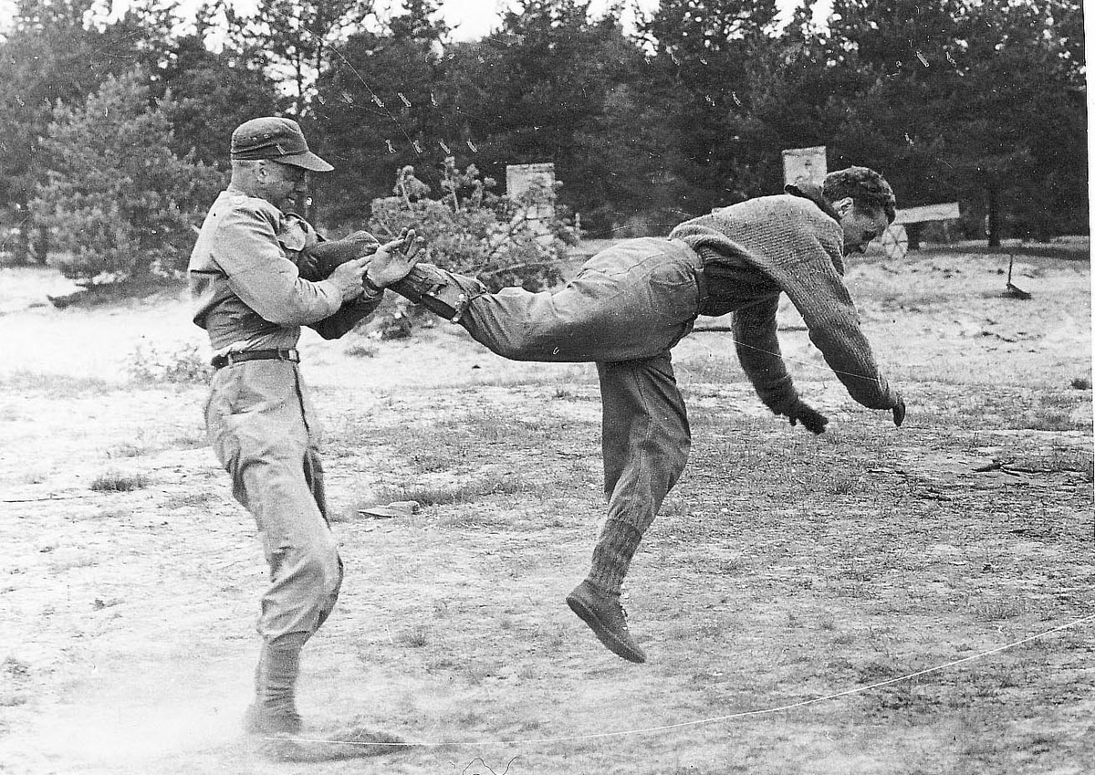 Fallskärmsjägarskolan i Karlsborg 1956.Närstrid på Heden.Bilden finns endast på CD-ROM.