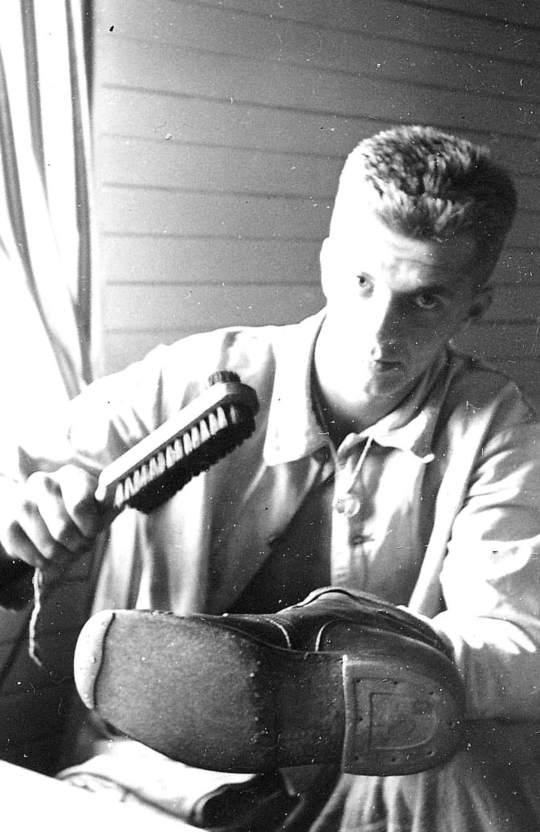 Fallskärmsjägarskolan i Karlsborg 1956.Skoputs.