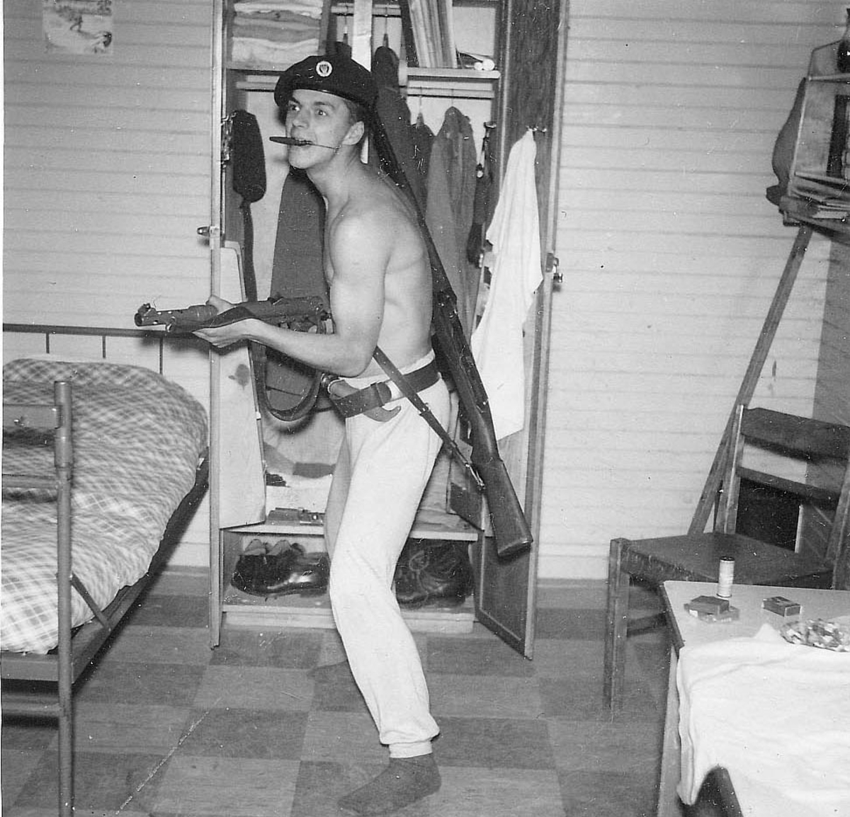 Fallskärmsjägarskolan i Karlsborg 1956.Skämt på logementet.