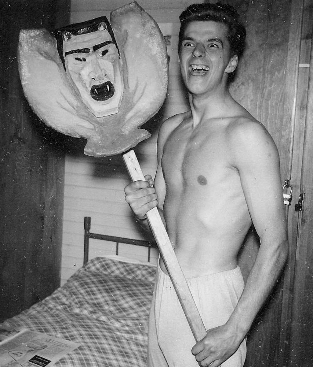 Fallskärmsjägarskolan i Karlsborg 1956.Skämt på luckan.