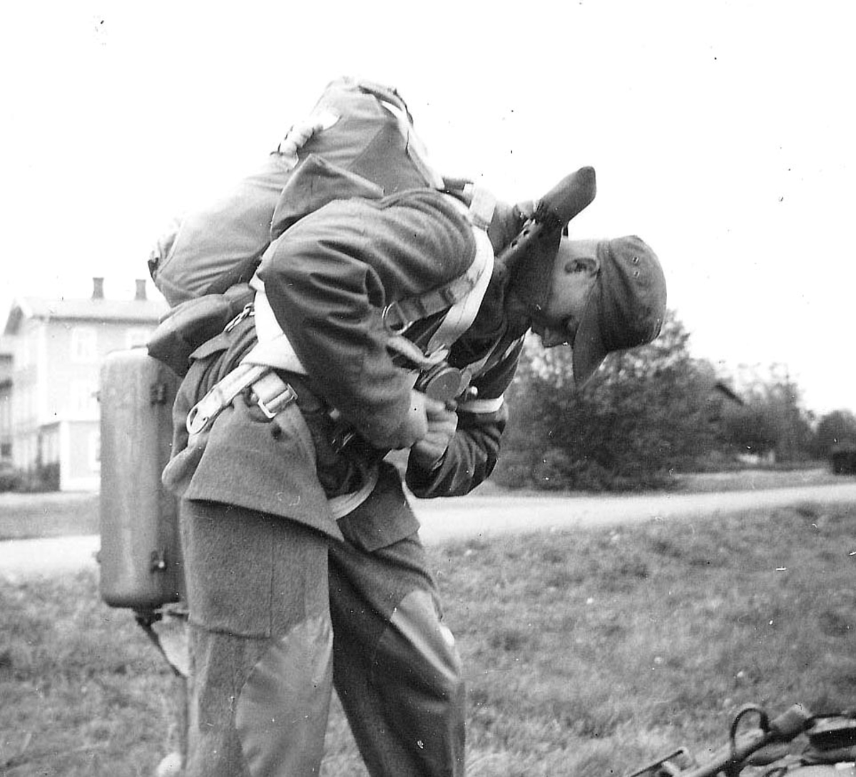 Fallskärmsjägarskolan i Karlsborg 1956.Skärmen utprovas.