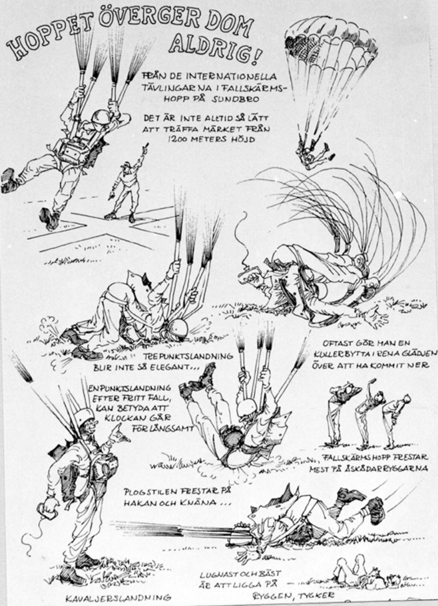Fallskärmsjägarskolan i Karlsborg 1961.Teckning.