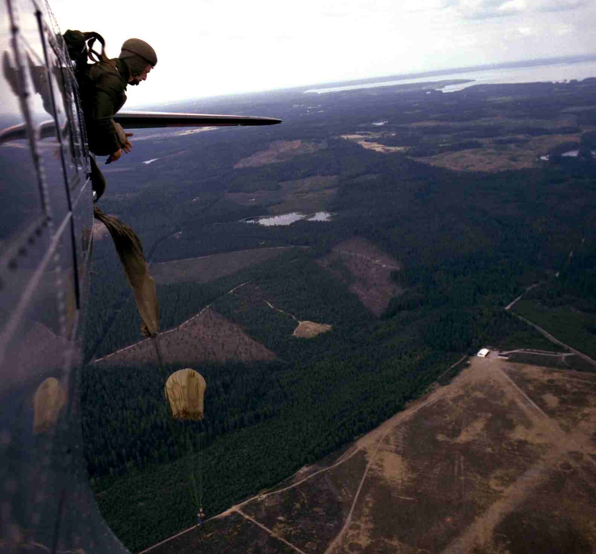 Fallskärmsjägarskolan i Karlsborg 1961.Uthopp.