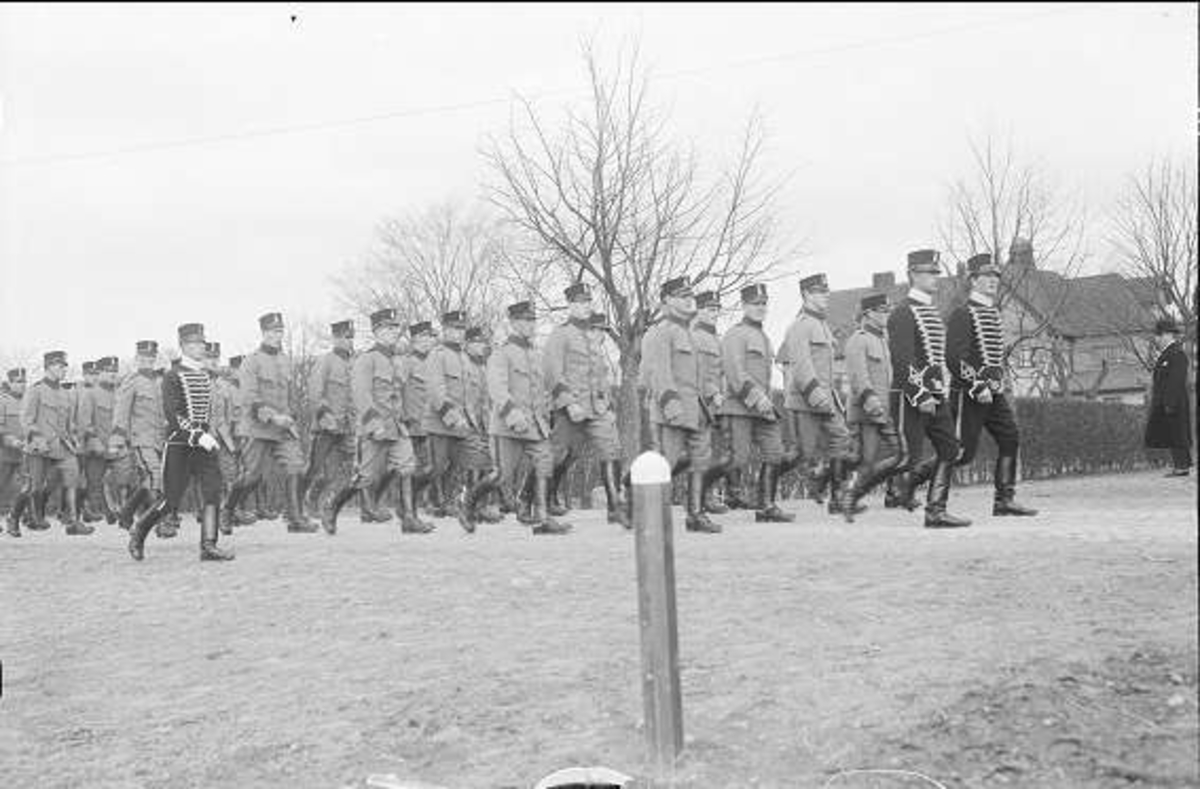 Förbimarsch efter krigsmans erinran i exercishuset (Lundasalen).