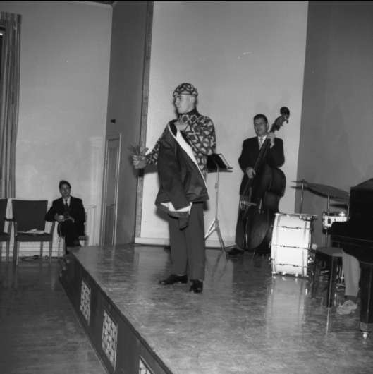 Karlsborg, mannekänguppvisning i Realskolans aula 1960. Endast neg finns.