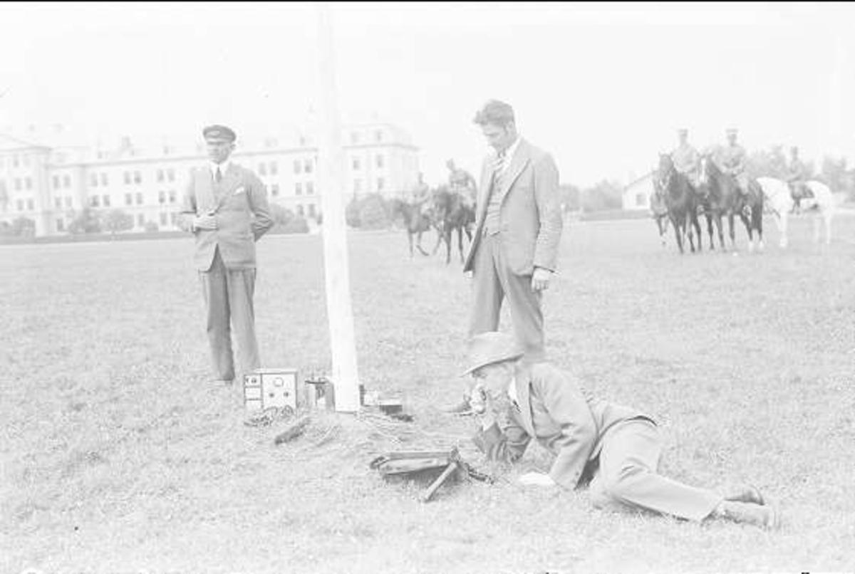 Sambandsförsök med olika signalapparater, bland annat 2 watts radio.