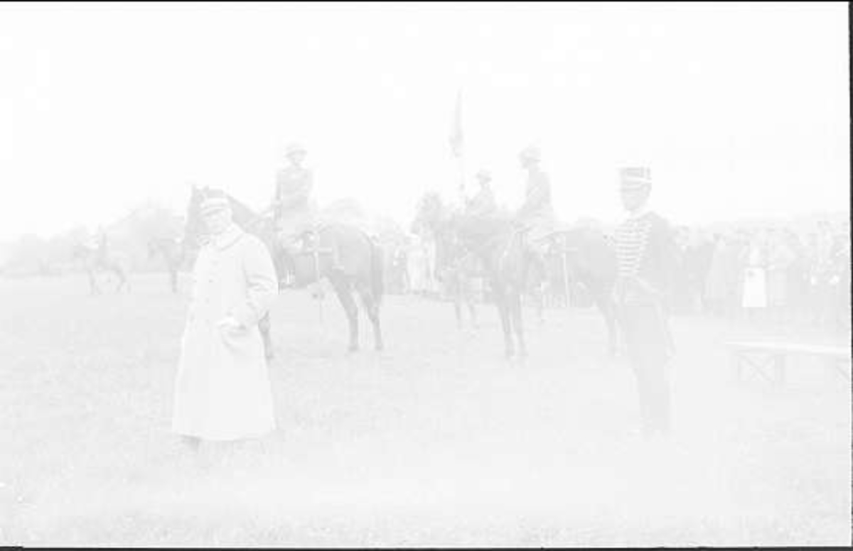 Prins Eugen, sekundchefen med stabschef och standar framför deltagarna i kamratdagen.
