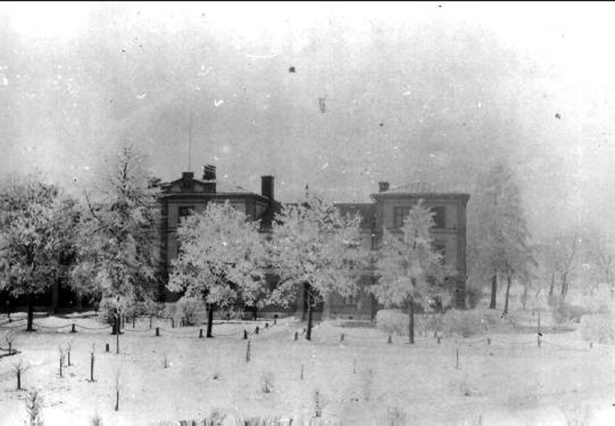 Fästningen. Västra befälsbyggnaden i ett vintrigt Karlsborg.