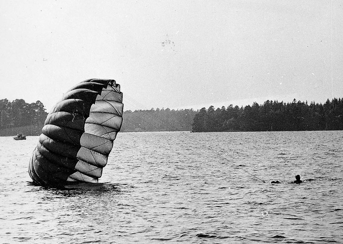 Fallskärmsjägarskolan i Karlsborg 1956.Vattenhopp.