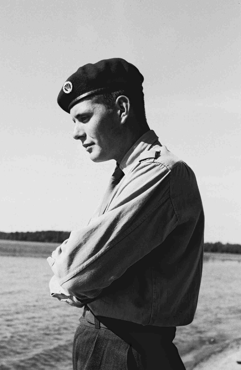 Fallskärmsjägarskolan i Karlsborg 1956.Vilostund i spåret.