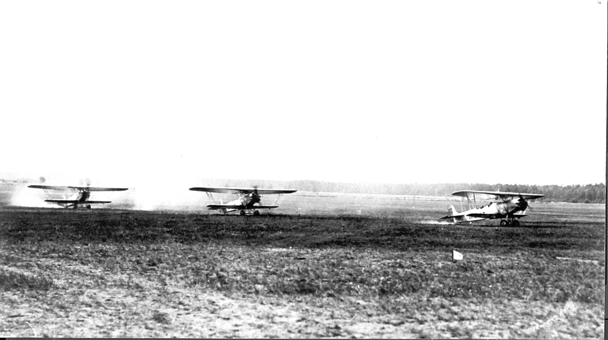 F6 Karlsborg hösten 1938. Spaningsplan typ F6 Fooker taxar in efter landning till sina uppställningsplatser som markerades med små flaggor.
