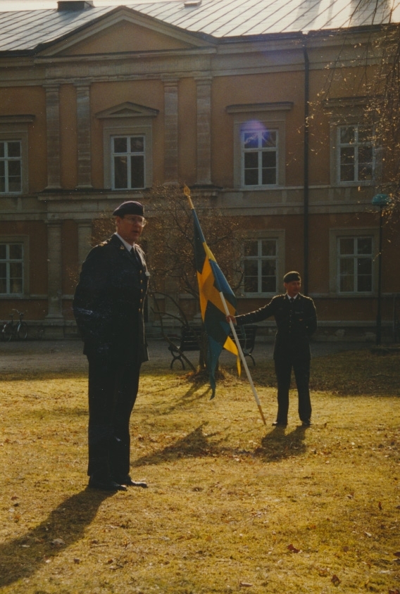 Livregementets husarer, K3.Reservofficerskurs (ROK) mitten av 50-talet. Kursavslutning. Tjf. chef talar.