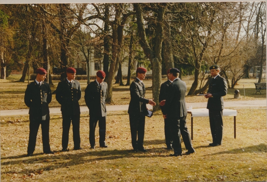 Titel: Livregementets husarer, K3.Reservofficerskurs (ROK) mitten av 50-talet. Kursavslutning.