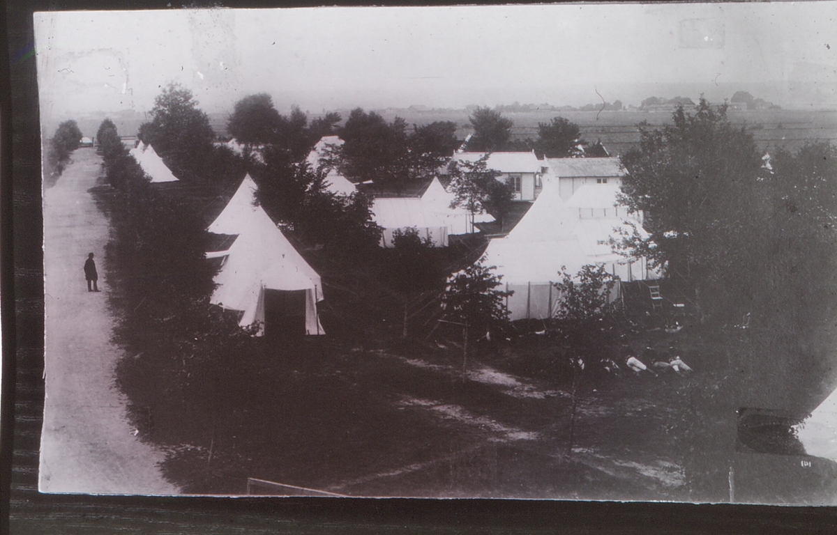 Livregementets husarer. Husarlägret på Sanna hed från nordväst. "Furagegatan" till vänster.1870-tal.
