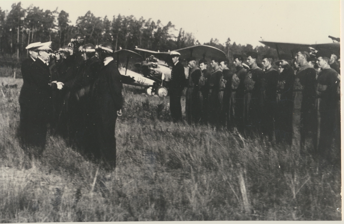 Flyget i Karlsborg före F6. 1932. General Friis vid inspektion på Karlsborgsfältet.
