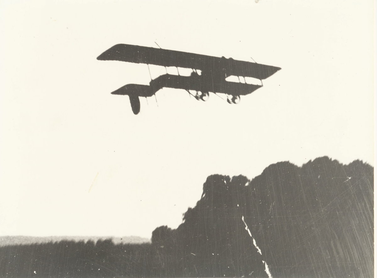 Flyget i Karlsborg före F6.Farman-Biplanet (SW10) vid befästningsövningar 1915. Basering på Gräshultsfältet.
