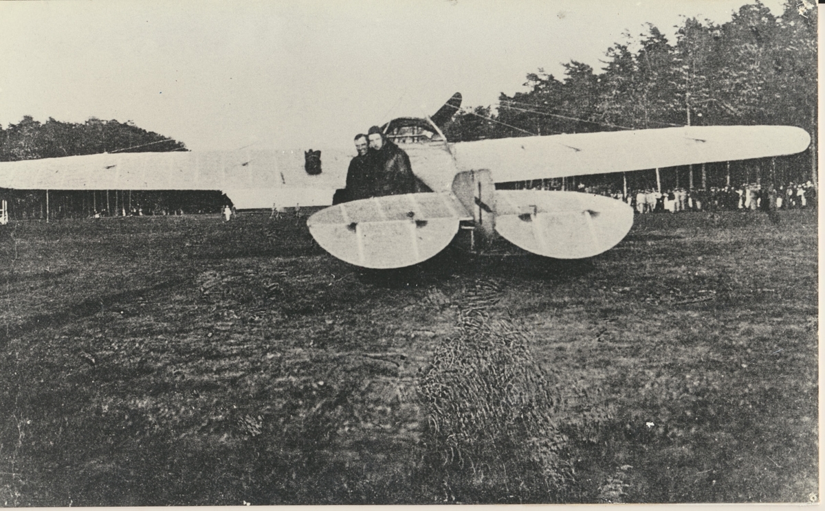 Flyget i Karlsborg innan F6.Svenskbyggda Nieuporten på "Lusharpan" 1914. Besättning: von Porat och Lars Adolf Blomberg.