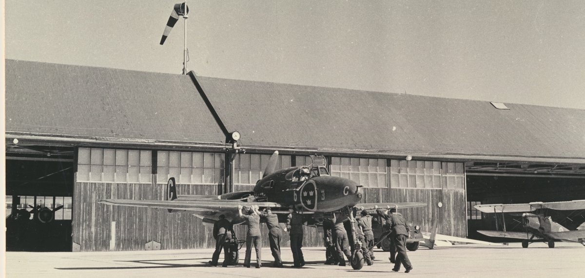 Flyget i Karlsborg innan F6 1920-tal. Dåtidens förflyttning av flygplan.