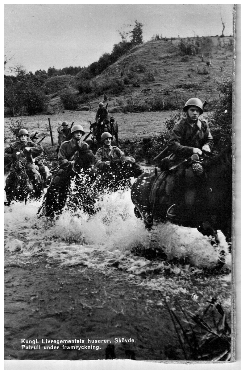 Livregementets husarer, K3 Skövde. Patrull under framryckning.