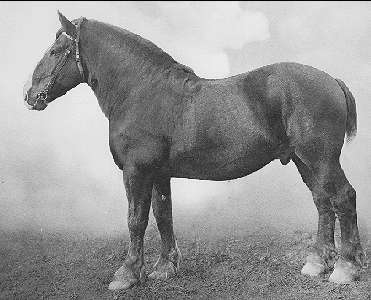 Ardenner imp. Fux med bläs och snopp. Mankhöjd 156 cm. Fader Favori, moder La Blonde. Ägare Bjärke Säby egendom Bjärks Säby, Östergötland. Född 1899 Prem. A.