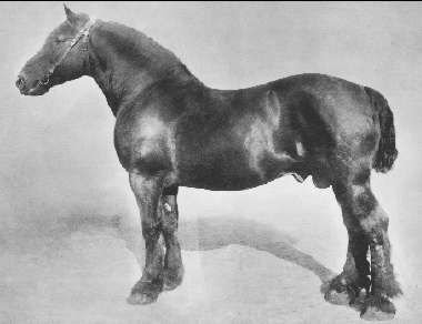 Ardenner, imp. Brun med stjärn. Mankhöjd 153 cm. Fader Favori. Moder Petite. Ägare godsägare W. Ullman Saltkällan, Munkedal, Bohuslän. Född 1895. Prem A.