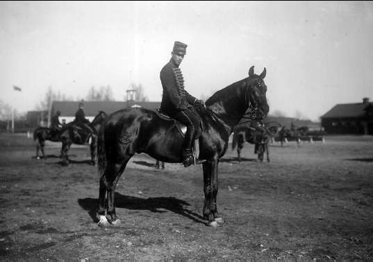 1. Årselever vid Strömsholmskursen, dressyr på stallplan. Strömsholm 1910-11.