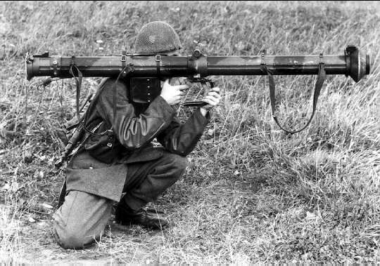 Jägare i eldställning med raketgevär för bekämpning av pansar.