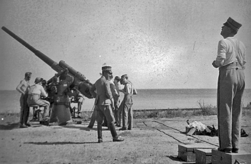 Karlsborg 1940-tal. Luftvärnet. 7,5 cm LV-kanon m/36. Löjtnant Carlesson .