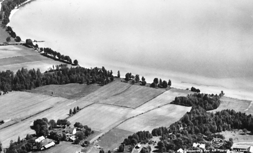 Flygfoto över Bredvik, Karlsborgs kommun. Vykort.